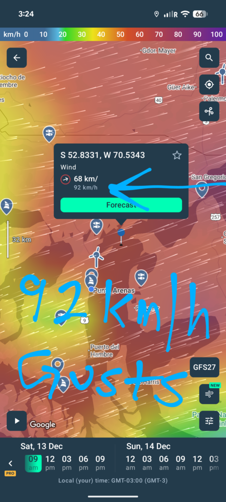 Okay, let’s head out for a look, if it turns to snot, we can just go back to Chile. Sally seemed good with this plan.